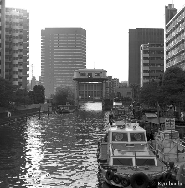 ![]() 隅田川の月島川水門。 Biometar 80mm F2.8 / 400TMAX |