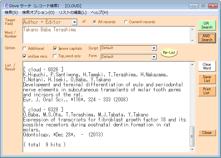 | [Print List] | 検索結果を印刷します。 | 検索結果の編集(R) - 印刷(P) |